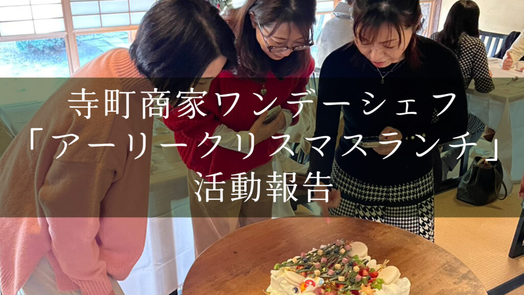 12月13日(土)、寺町商家にてワンデーシェフ企画「アーリークリスマスランチ」 を開催いたしました。 当日は20名のご予約がすべて満席となり、多くの方にご参加いただ… -